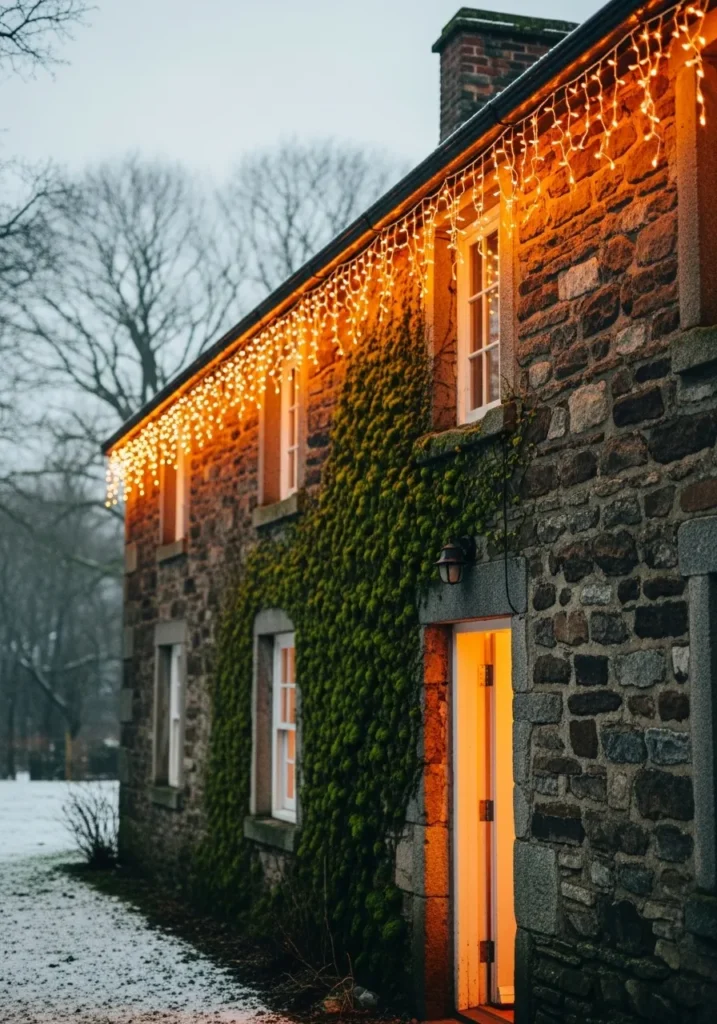 Stone Cottage With Icicle Lights
