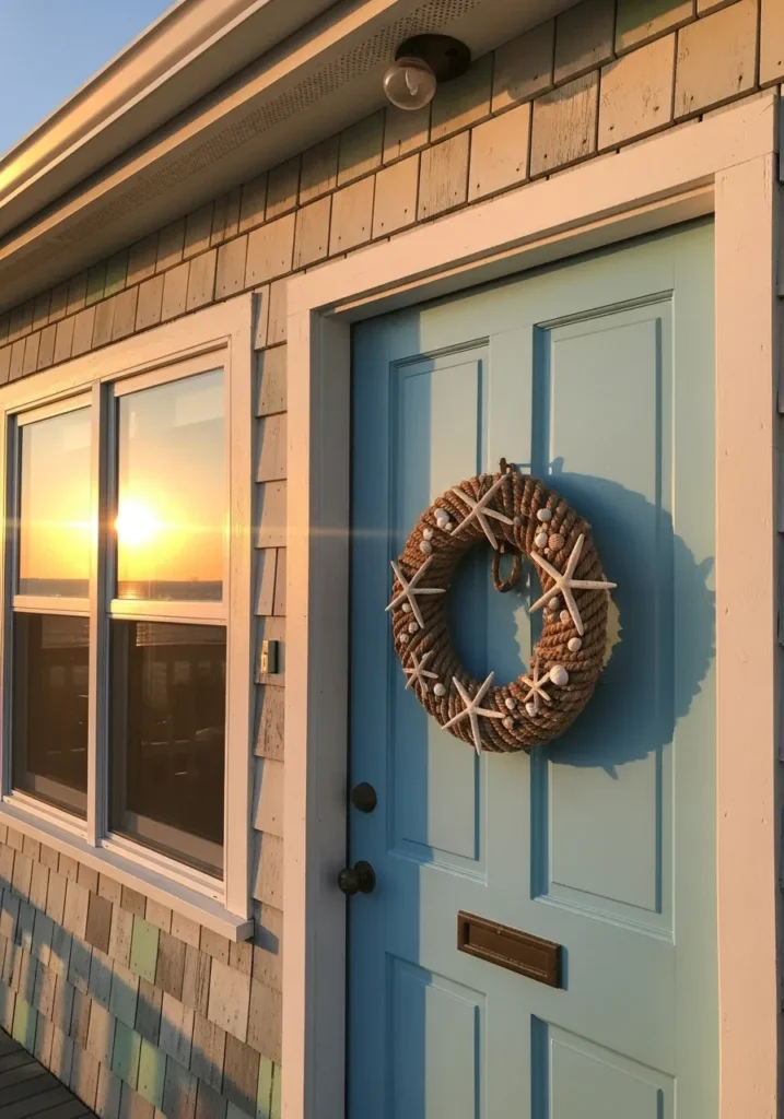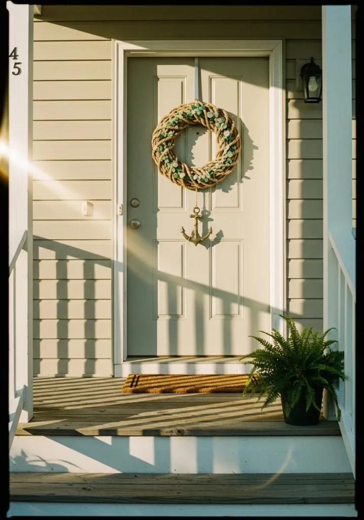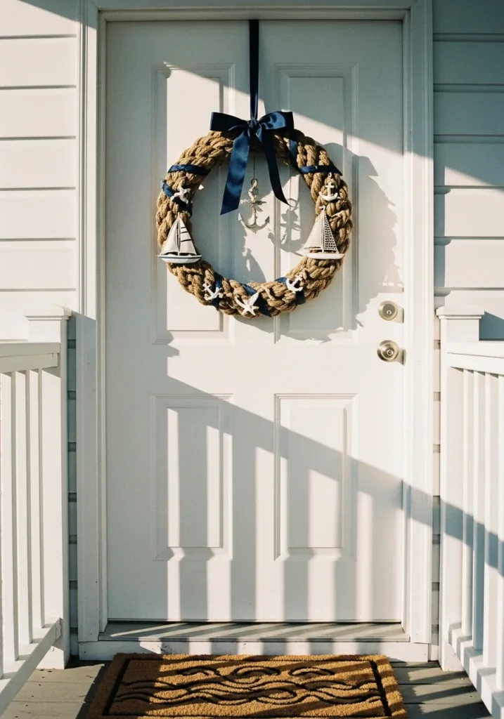 If you love a touch of seaside charm mixed with cozy holiday warmth, these ideas will make your front door look like a relaxing coastal escape.