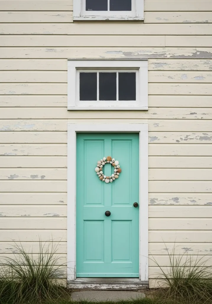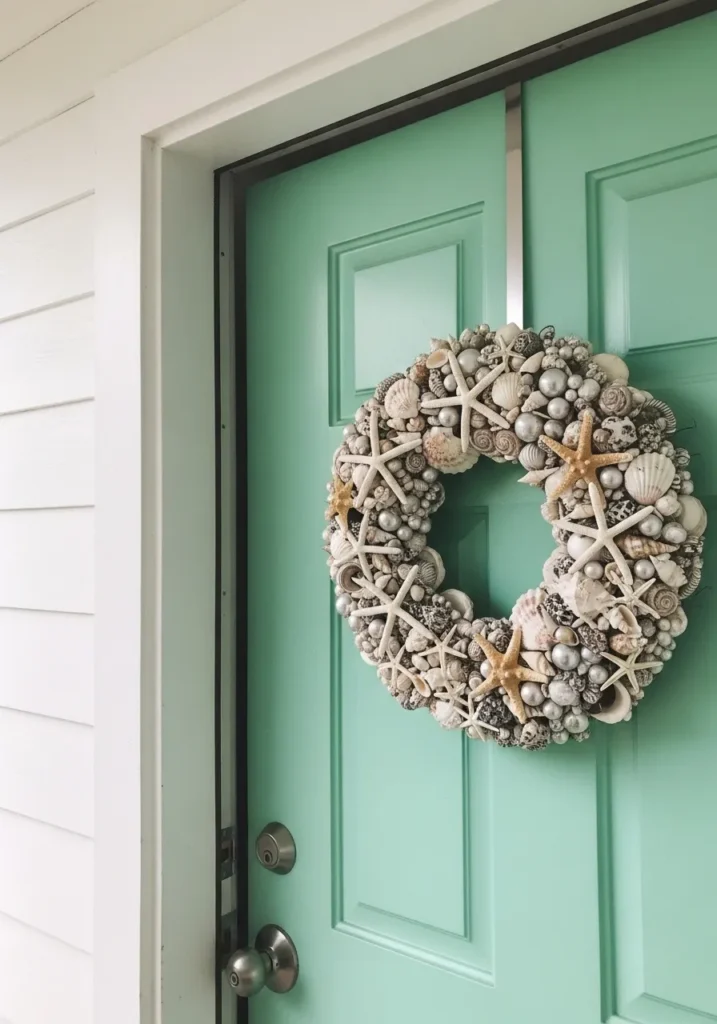 Seashell Wreath on a Mint Door