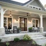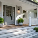 I am seriously crushing on this tonal grey palette because it looks so incredibly chic against a green lawn. It has that expensive custom feel without being too flashy or over the top. If you are a fan of that clean and uncluttered minimalist aesthetic then this is definitely the winner for you. I think it makes the whole entrance of the house look much more cohesive and modern. It is basically the ultimate way to give your home a fresh face lift with zero fuss.