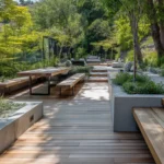I absolutely love the chic vibe of this design. The sharp angles of the pool and the sophisticated lounge space make it feel like a luxurious retreat, even if you’re just relaxing at home. Plus, the blend of natural greenery and modern materials gives this pool area a fresh, airy feel that I can’t get enough of. It’s the perfect balance of luxury and comfort, and I can totally picture myself unwinding here after a busy day. It’s definitely an ideal design for anyone looking to create a stylish, contemporary outdoor space!