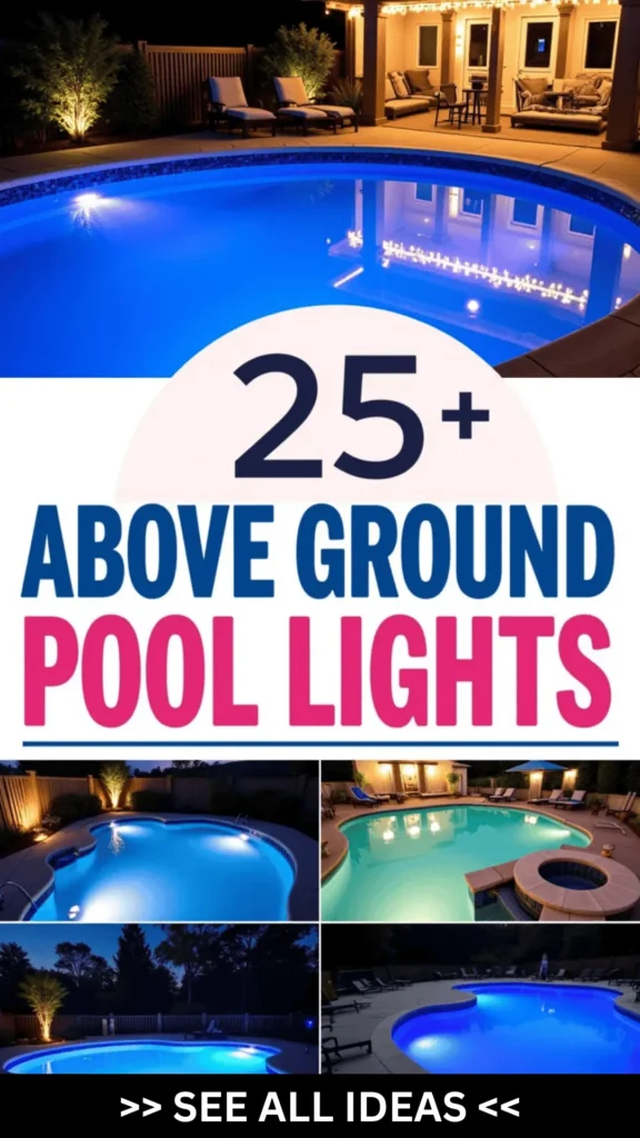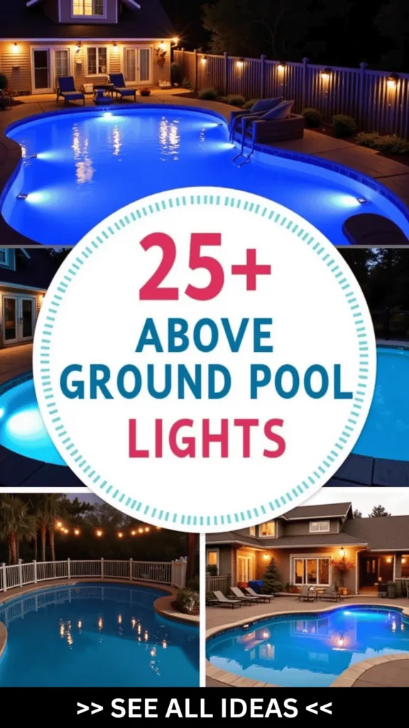 From twinkling fairy lights to sleek underwater options, I’m here to share my favorite ideas that will turn your above-ground pool into a glowing oasis.