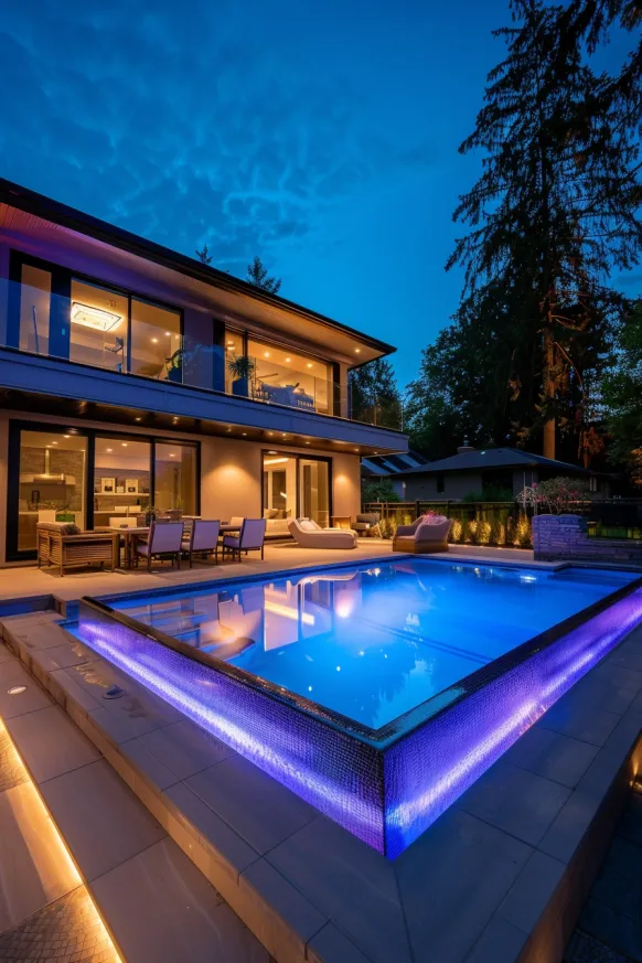Sleek Contemporary Pool with Vibrant LED Lighting