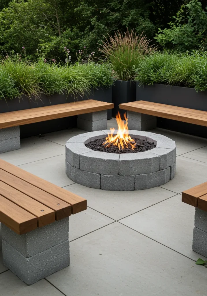 Sleek Modern Patio with Built-In Cinder Block Fire Pit