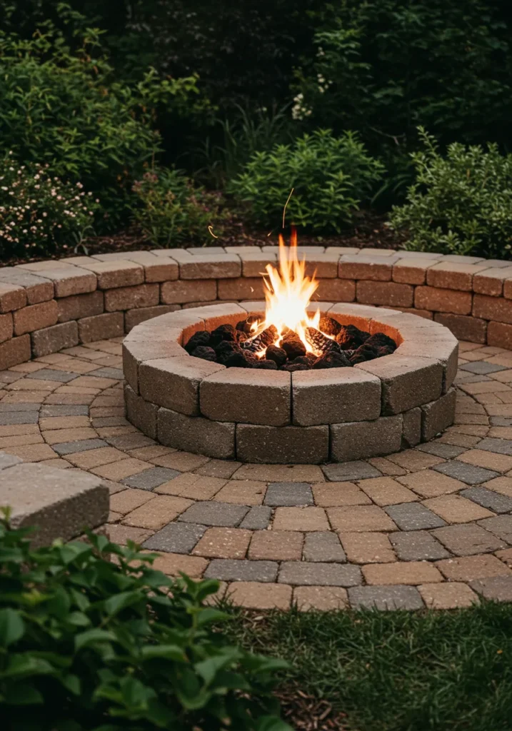 Cozy Backyard Fire Pit with Earthy Paver Seating