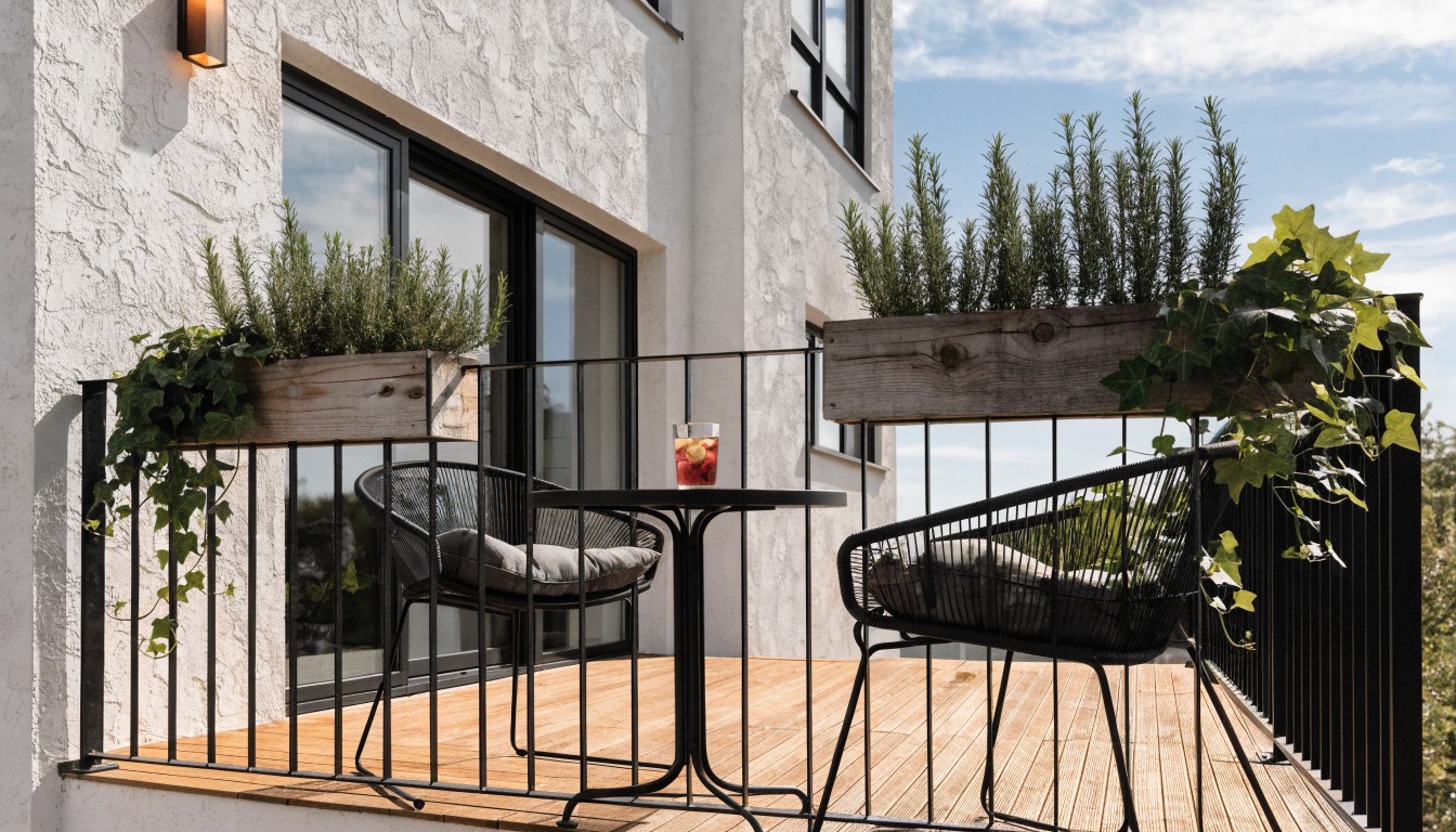 These setups suit older brick apartments in town, where balconies often run along the front. Pick slim metal furniture that stacks if needed, and use pots that hook on the rail or sit low. Just watch the weight on those old railings.