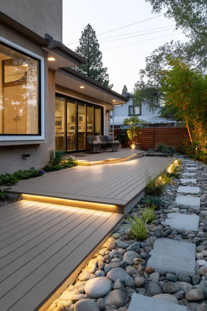 This one really wins me over because of the lighting. It adds so much atmosphere without feeling overdone, and it makes the deck feel cozy and inviting even in the evening.