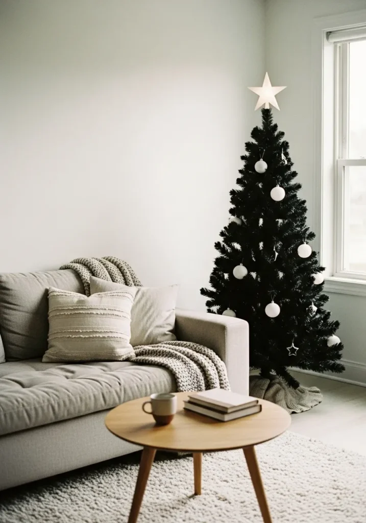 Minimal Comfort with a Black Christmas Tree