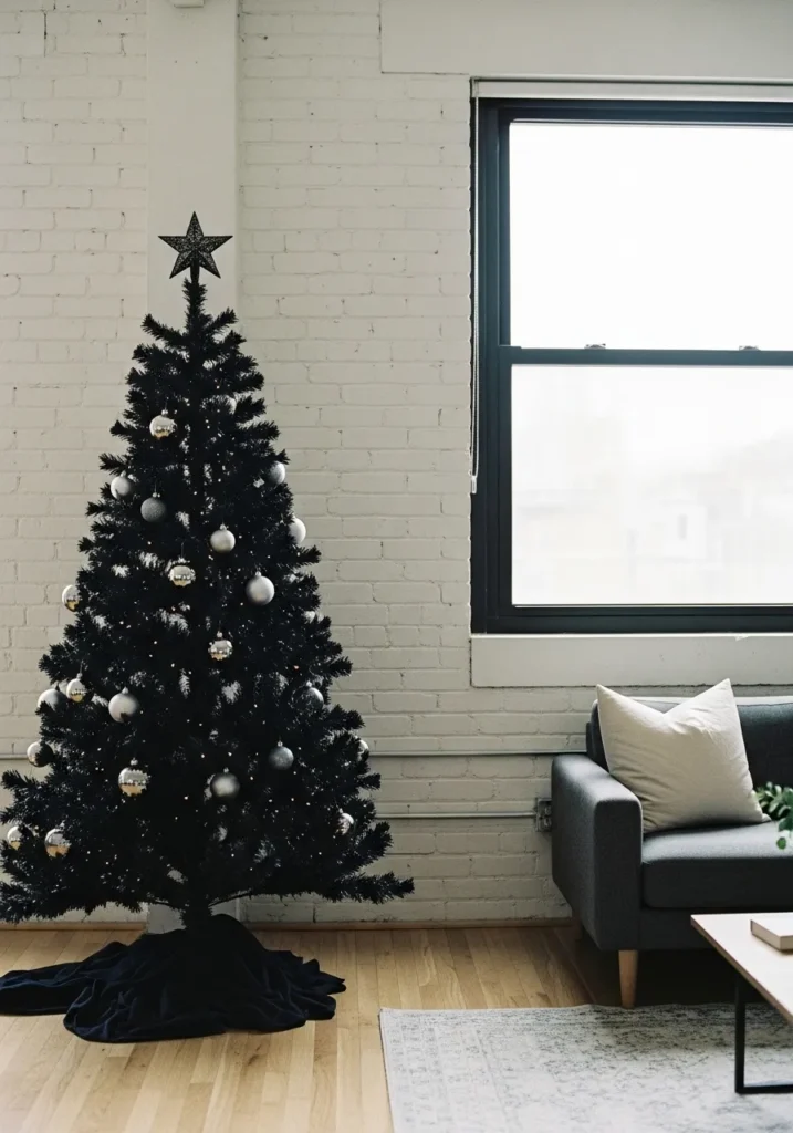 Chic Loft Style with a Black Christmas Tree