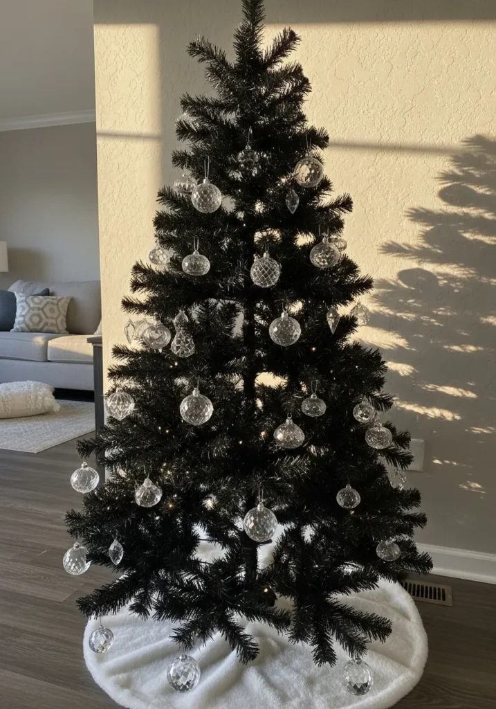I think this design is so clever. The clear ornaments shimmer like ice against the dark branches, creating an understated glamour that feels effortlessly classy. It’s the perfect choice for anyone who loves minimalism but still wants a bit of holiday magic.