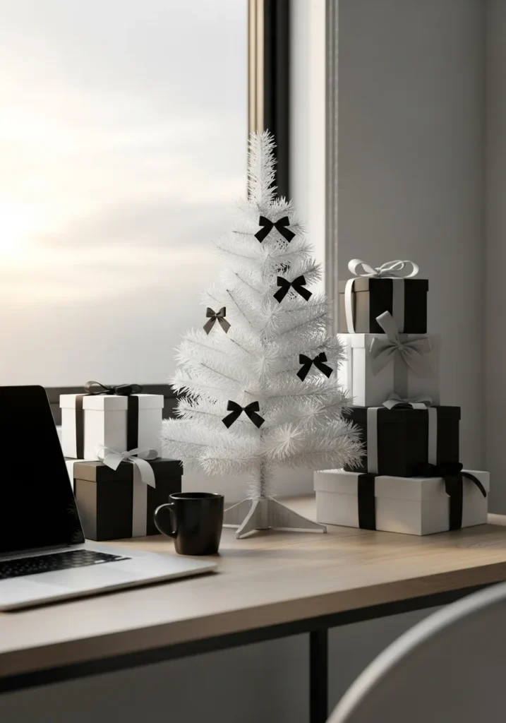 I adore how such a tiny tree can make such a big statement. The black bows add just the right amount of contrast, and the simplicity feels refreshing. It’s a wonderful idea for a home office or small space that still wants a hint of Christmas cheer.