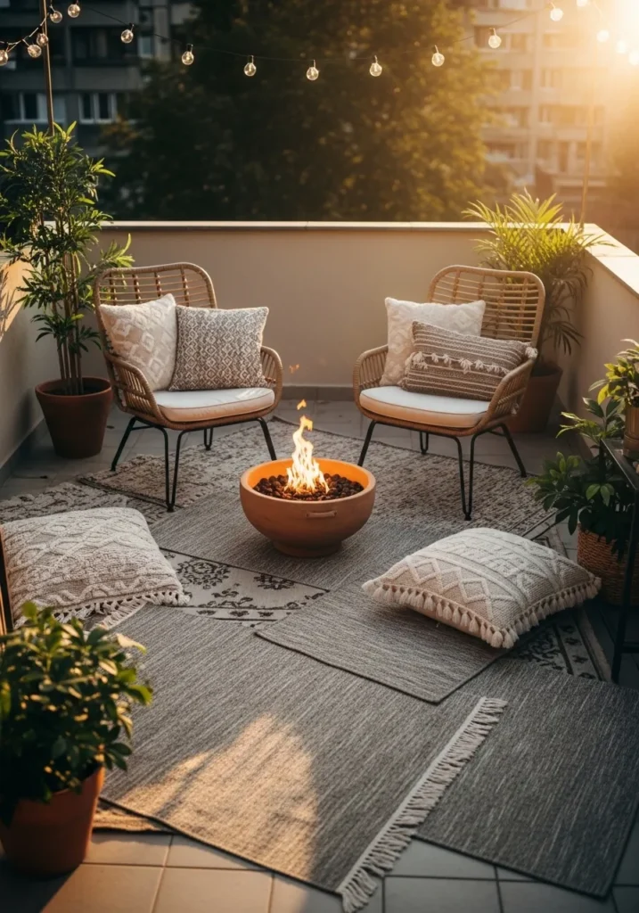 Cozy Fire Bowl Balcony Setup