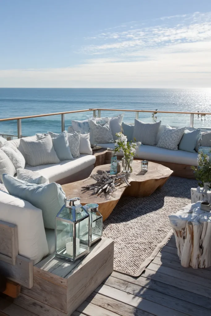 I love how inviting this looks. It feels like a place where conversations last longer and time slips by unnoticed. That easy comfort is what makes coastal decks so special to me.
