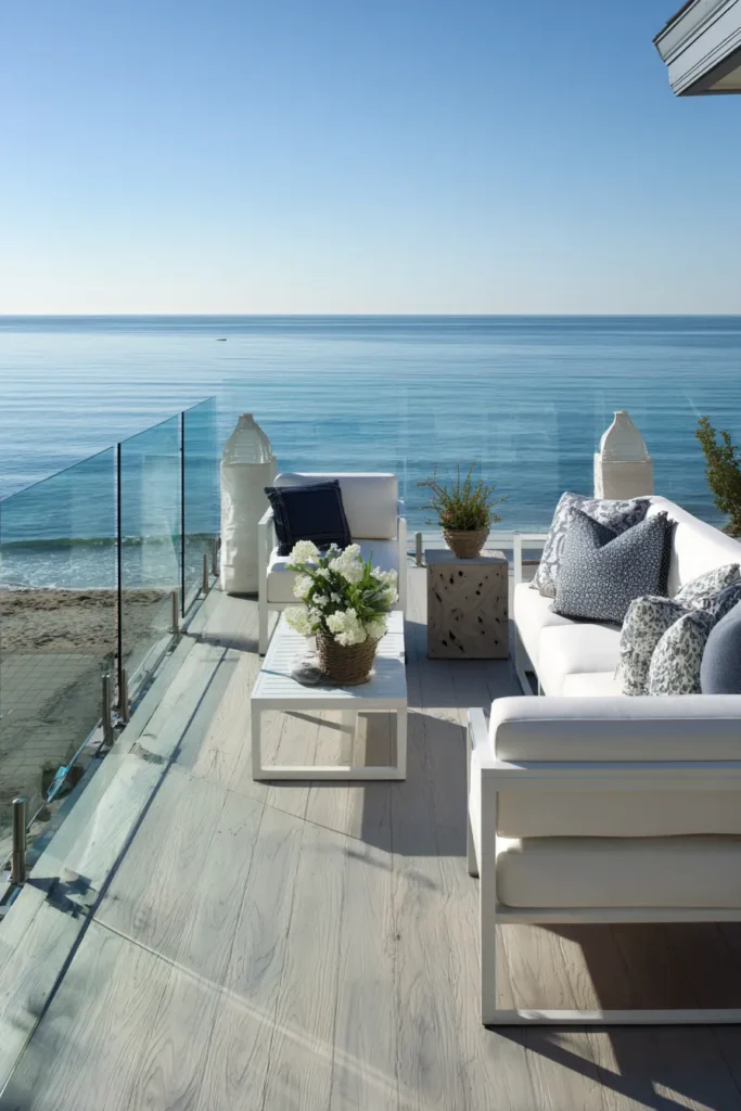 Sunlit Glass Railing Coastal Deck