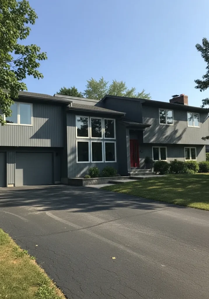 Kendall Charcoal usually carries a slight warm gray undertone, which helps it work well on large exterior surfaces. In brighter light it can show a bit more gray, while in shade it deepens toward a darker charcoal. It tends to pair nicely with white trim, stone steps, and natural landscaping. A solid choice for mid century homes and simple modern exteriors where a pale color would feel a little weak.