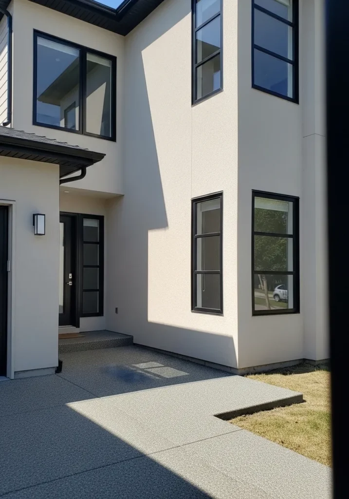 Simply White carries a soft creamy undertone that helps it handle sunlight well. In strong daylight it appears bright and fresh, while in shaded areas it settles into a smoother off white. It tends to work nicely with dark metal trim, glass, and minimal landscaping. A good option when someone wants a modern white exterior that still feels comfortable rather than clinical.