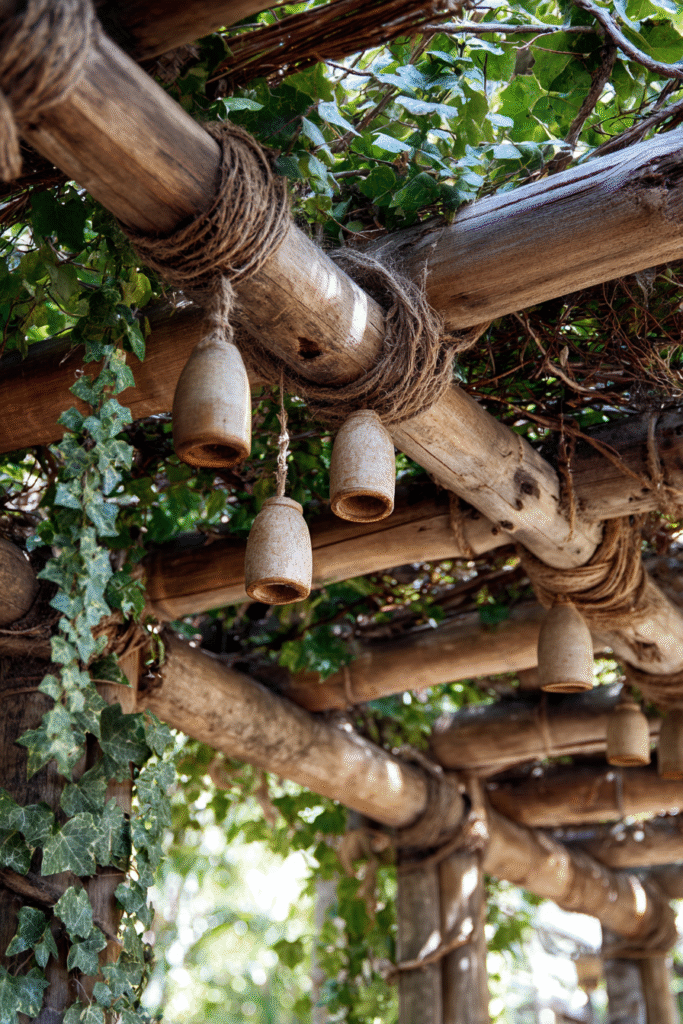 Rustic Bamboo and Rope with Hanging Clay Decor