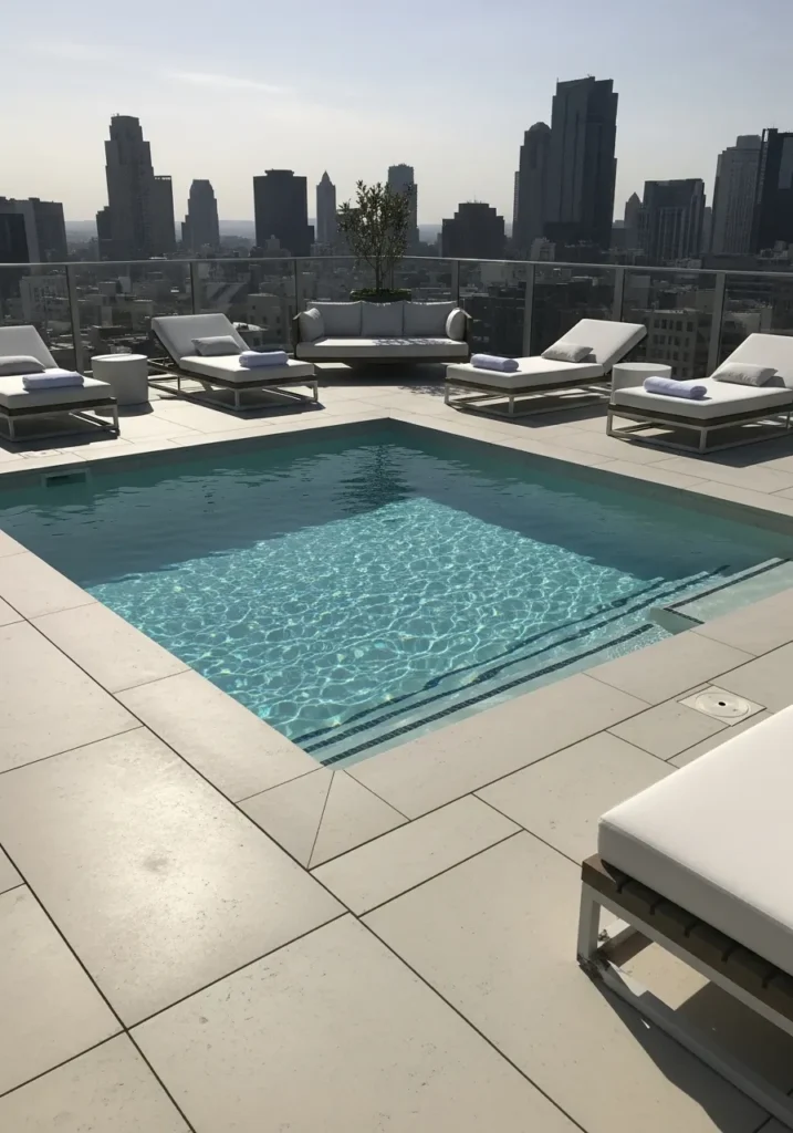 There is something undeniably glamorous about a rooftop pool. I love how this one feels stylish but not flashy. It makes the entire rooftop feel like a boutique hotel escape.