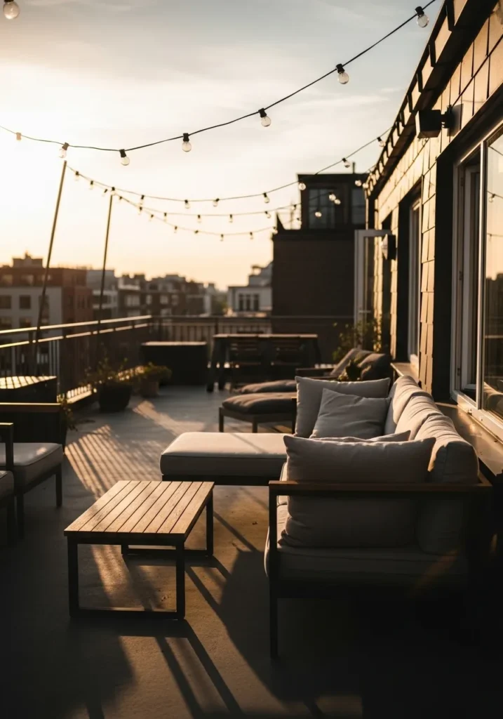 Golden Hour String Lights on a Modern Balcony