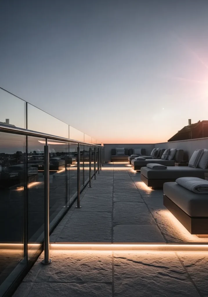 Glass Railing Rooftop with Linear Step Lighting