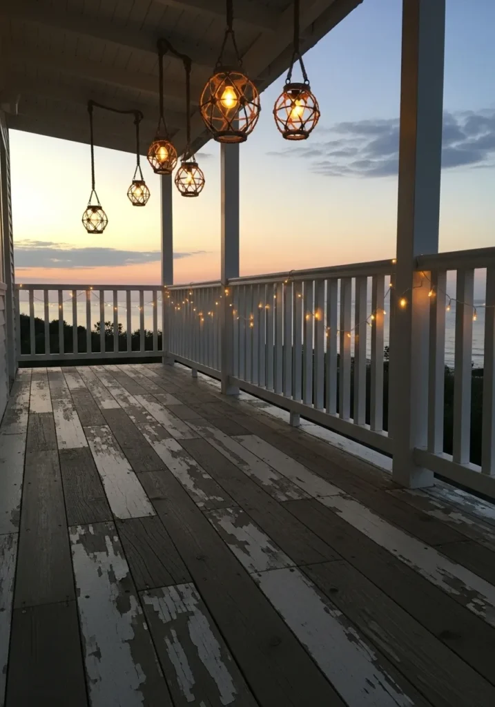 Coastal Inspired Veranda with Hanging Globe Lights