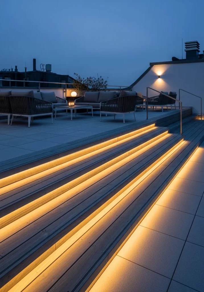 Sleek Rooftop Steps with Integrated Light Strips