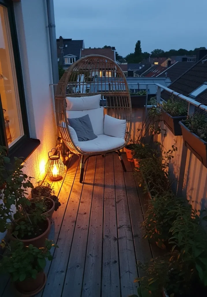 I honestly adore small terraces like this because they feel so romantic and intentional. It reminds me that even the tiniest balcony can feel special with the right lighting. A few plants and twinkling lights are sometimes all you need for dreamy nights at home.