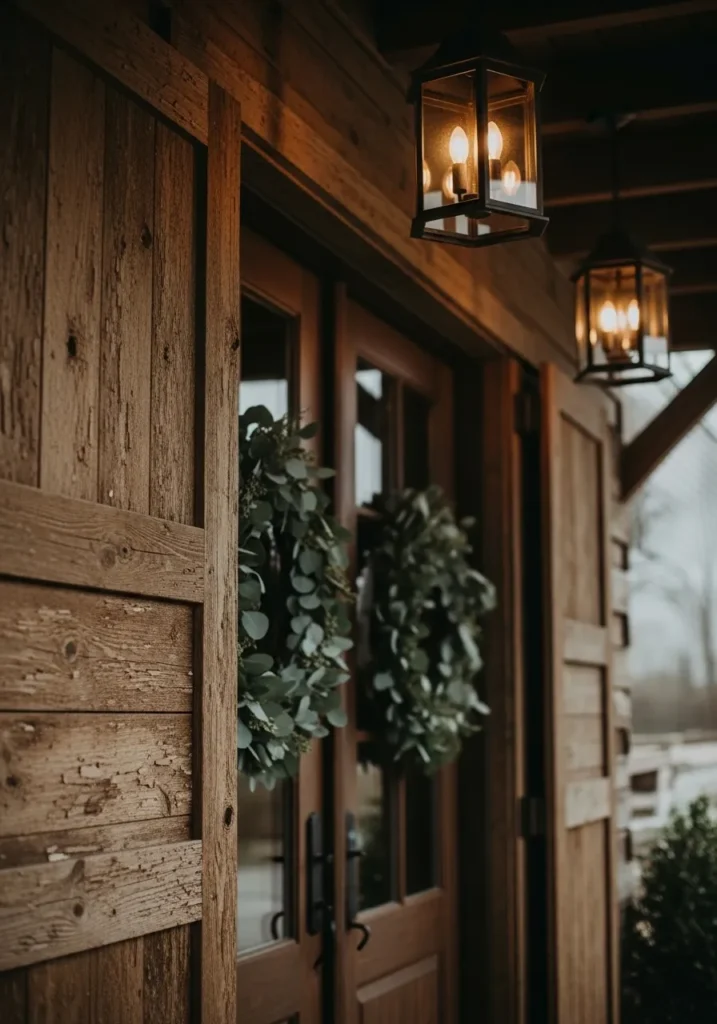I can almost feel the chill outside and the instant comfort of stepping through this door. It feels like home in the most festive way, and those lanterns make the perfect first impression for holiday guests.