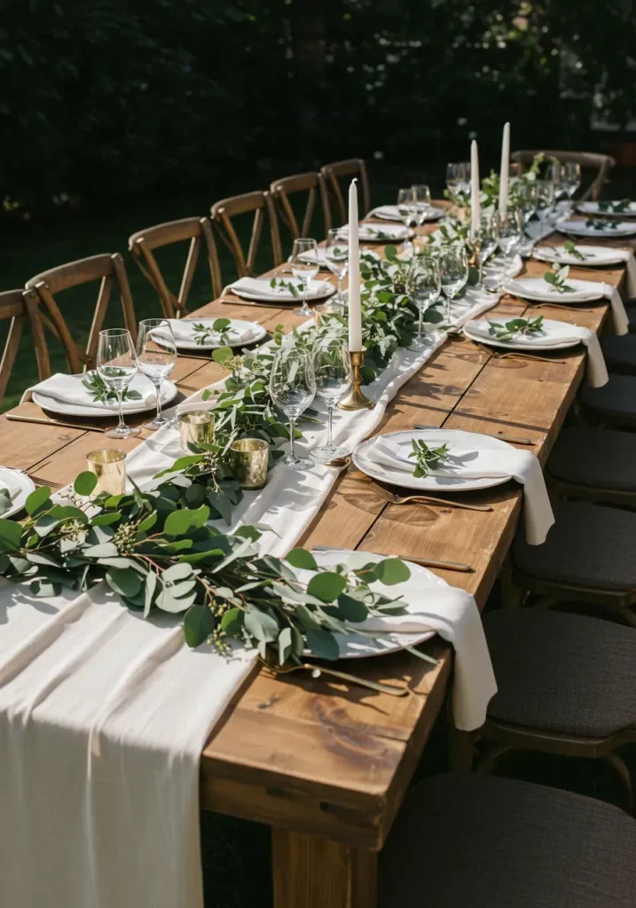 I love how calm and refreshing this setup feels. The mix of greenery and wood instantly creates a soothing mood that feels natural yet stylish. It’s the kind of table I’d want to linger around for hours, sharing stories and laughter as the sun sets.