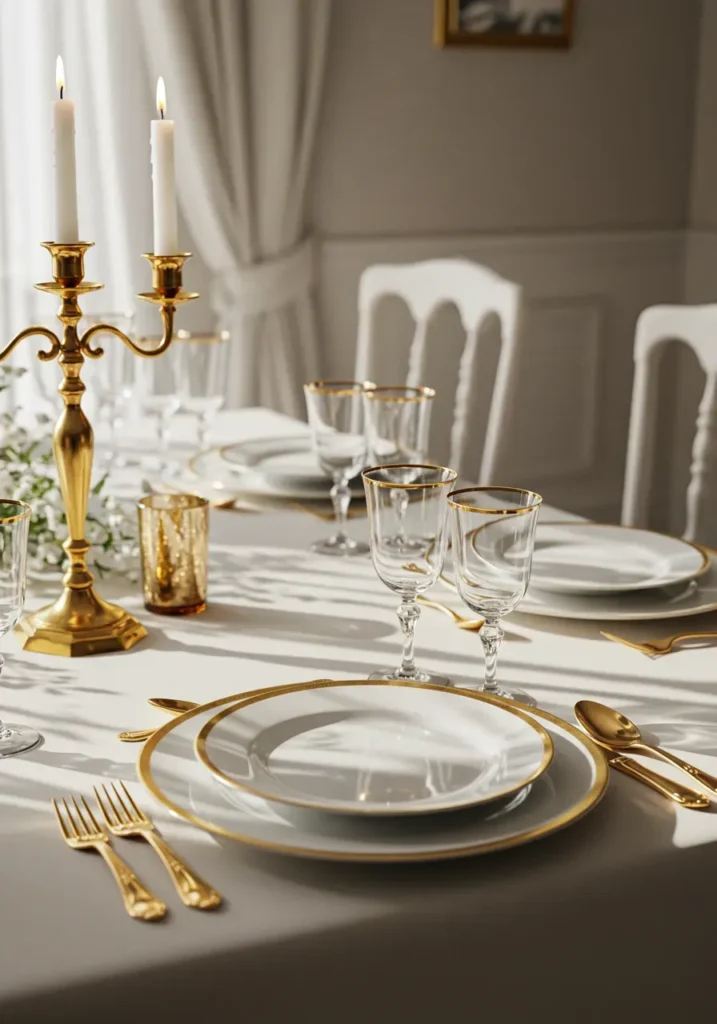 Luxurious Gold-Trimmed Table Setting