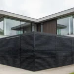 I love how bold this fence feels without being overwhelming. The contrast between the black wood and pale gravel is so satisfying. It makes the yard feel calm and protected. This is the kind of design that instantly creates peace and quiet.