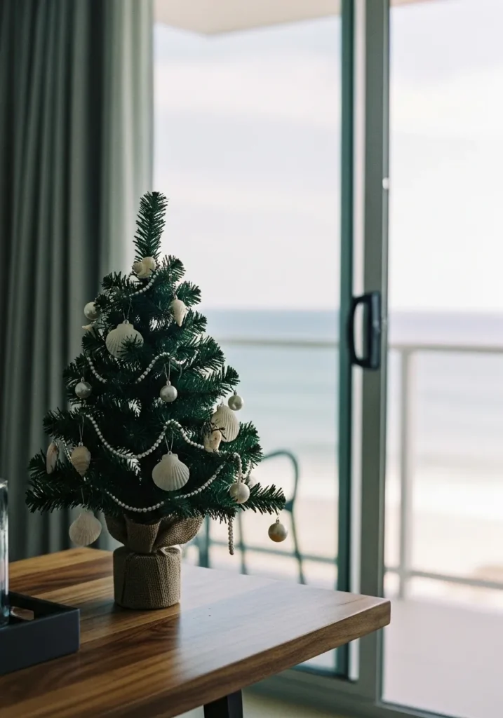 This one makes me smile because it reminds me of Christmas spent somewhere warm and sunny. The sunlight, the sparkle of the ornaments, and the touch of greenery outside—it’s everything I love about blending beach life with holiday magic.
