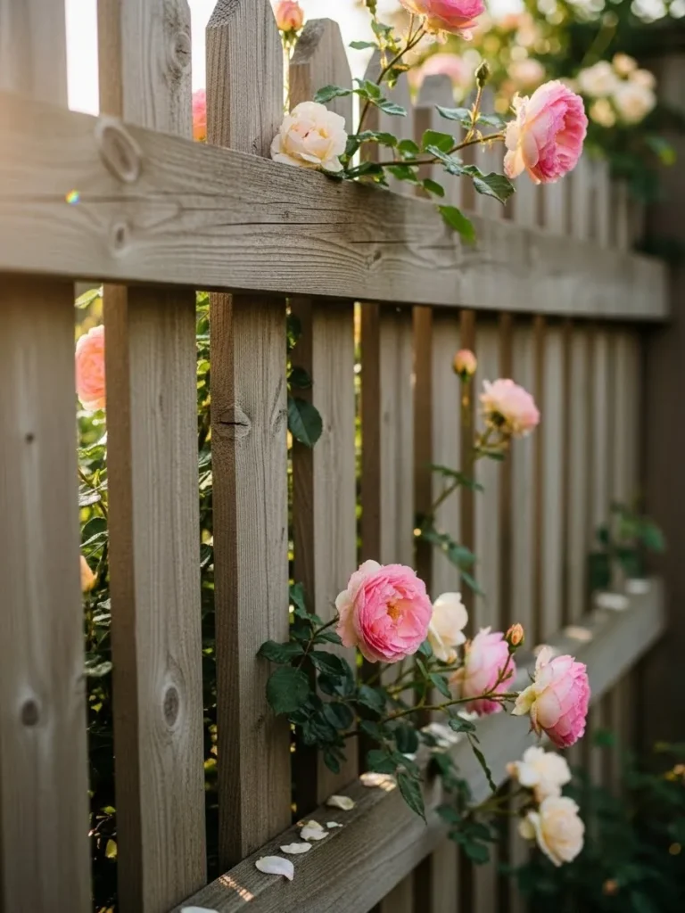 This fence feels so sweet and timeless to me. I love how the roses soften the lines and make everything feel more welcoming. It reminds me why flowers and fences are such a perfect pairing.