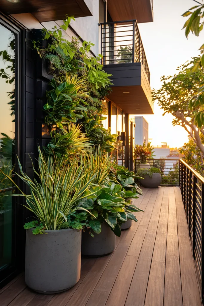 Narrow Balcony Deck With Layered Greenery
