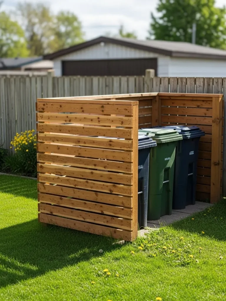 Simple Cedar Slat Bin Enclosure That Blends Into the Yard
