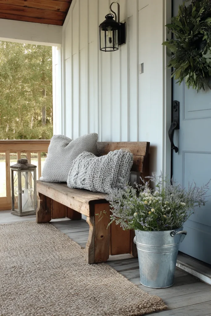 Rustic Bench Porch With Cozy Layers