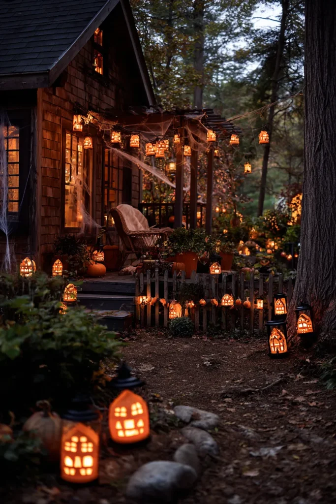 I’m drawn to this one because it feels like such a balanced mix of spooky and elegant. The pumpkins are fun and playful, but the warm glow of the lanterns makes the whole setup feel so cozy. It’s the kind of entry that would make trick-or-treaters run up with excitement.