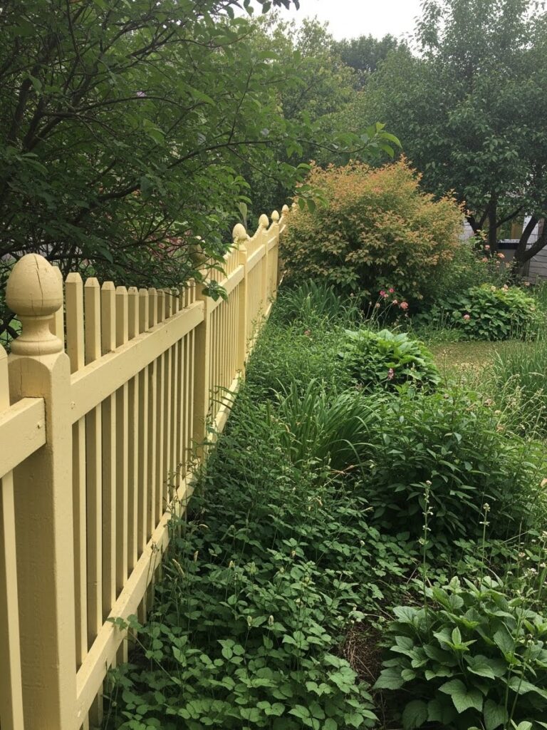 I love how this fence feels cheerful without demanding attention. The yellow adds just enough color to lift the space while letting the plants stay in charge. It reminds me that a fence does not have to be dramatic to be beautiful. Sometimes simple and sunny is all you need.