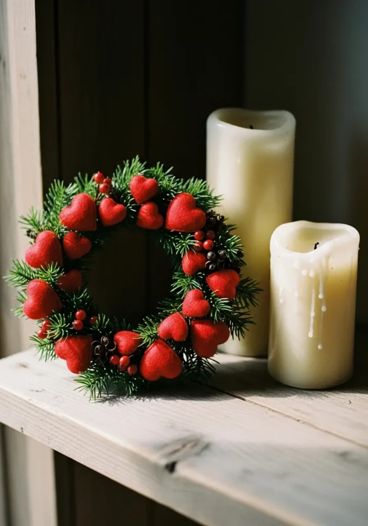 Red Heart and Pine Mini Wreath