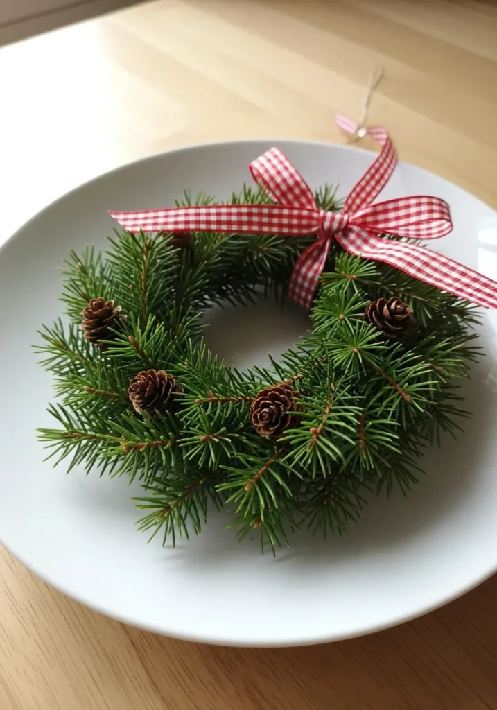 Mini Fir Wreath with Gingham Ribbon