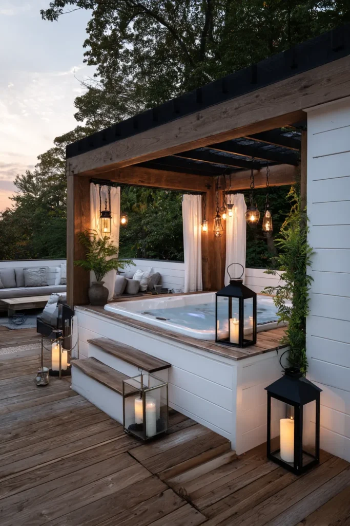 If you are into cozy nights outside these deck ideas with hot tubs are the kind that make you want to linger a little longer.
