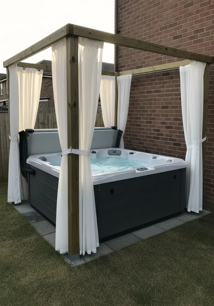 I absolutely love how this transforms a basic hot tub into a spa like hideaway. The curtains instantly add a sense of intimacy and calm. It feels luxurious without being over the top. If I had this in my backyard, I would be out there every evening just soaking and relaxing in total comfort.