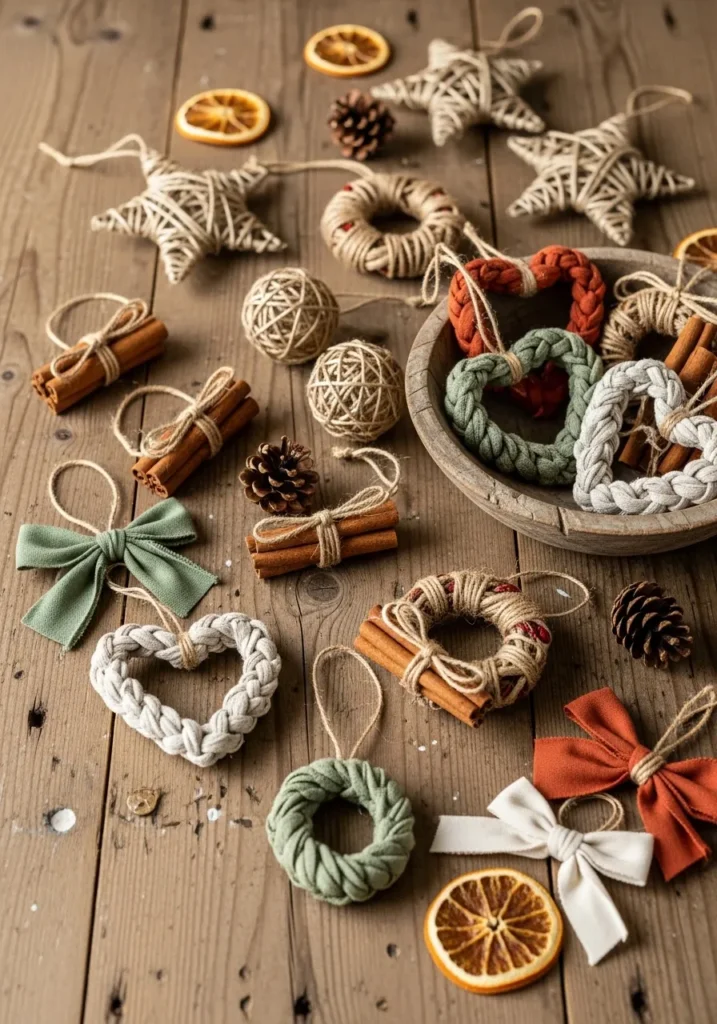 This collection of eco-friendly Christmas ornaments is a crafter’s dream come true. Twine stars, braided fabric hearts, cinnamon stick bundles, and dried orange slices bring a warm, rustic charm to any tree. Each piece feels lovingly handmade, using materials that are not only sustainable but also timelessly beautiful.