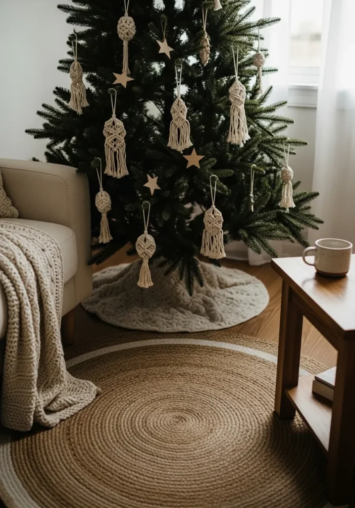 I think this setup is absolutely charming because it feels so personal and inviting. The macrame adds texture and heart, showing that handmade can be chic and meaningful at the same time. It’s the kind of décor that makes you want to curl up with a book and stay a little longer by the tree.