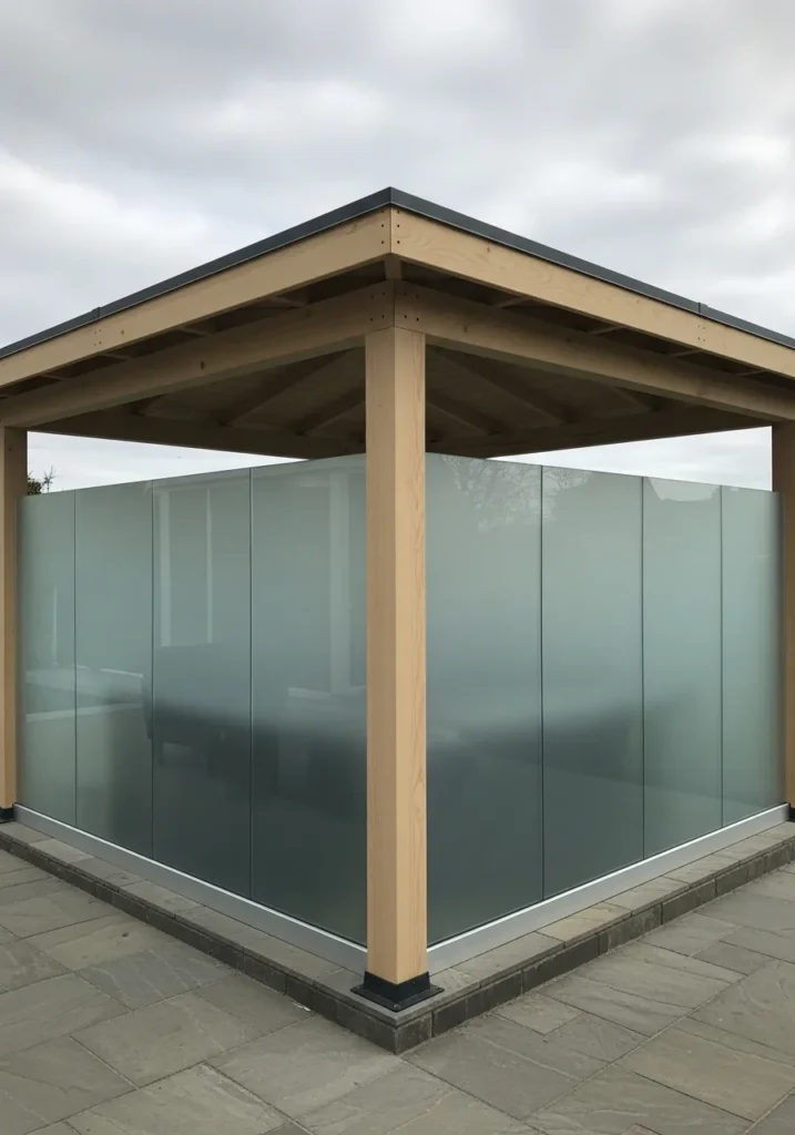 Minimalist Gazebo With Frosted Glass Privacy Panels