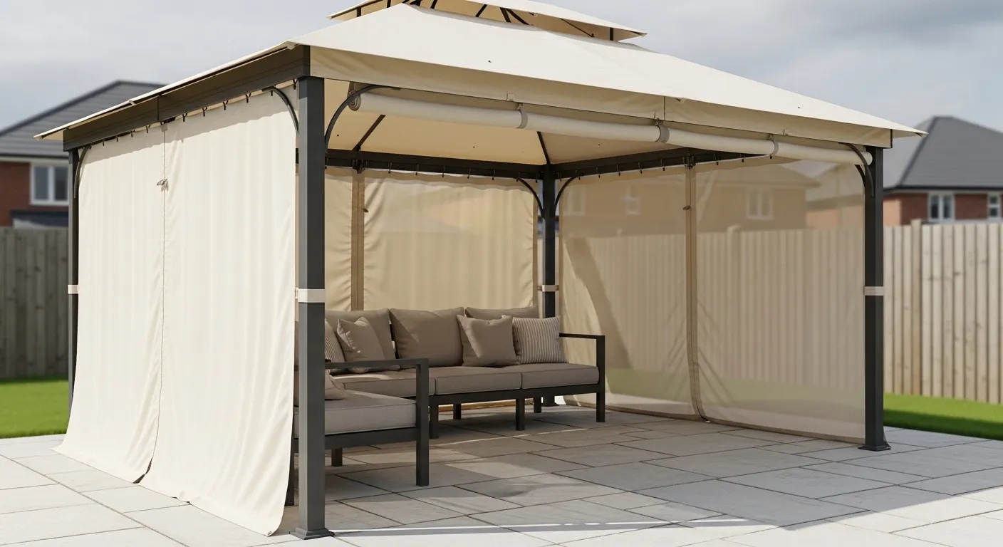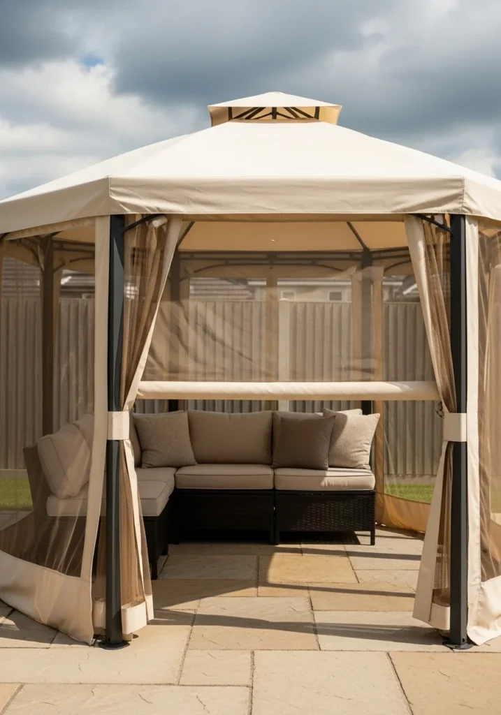 Neutral Canopy Gazebo With Mesh Privacy Panels