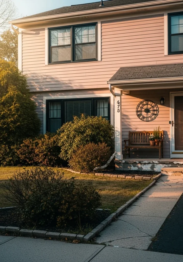 I am smitten with how this color transforms under the golden hour light. There is something so incredibly inviting about the way the soft, rosy undertones bring out the textures of the garden greenery. I adore the balance between the traditional siding and those bold black accents because it keeps the house feeling fresh and current. This layout proves that you don’t need a massive mansion to achieve a high-end designer look that feels like a warm hug.