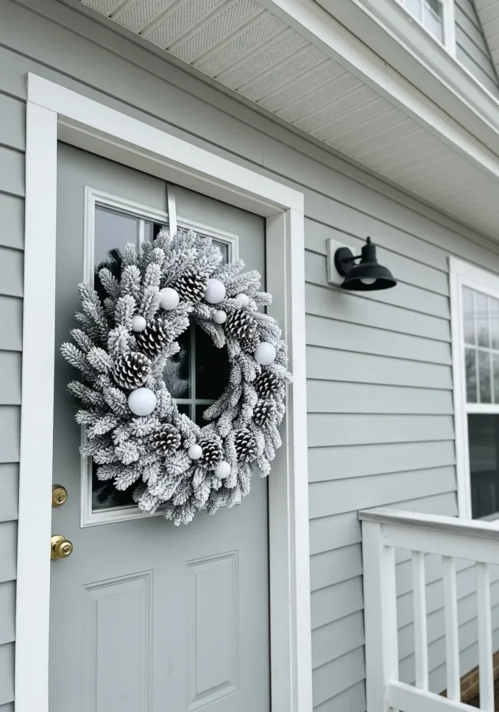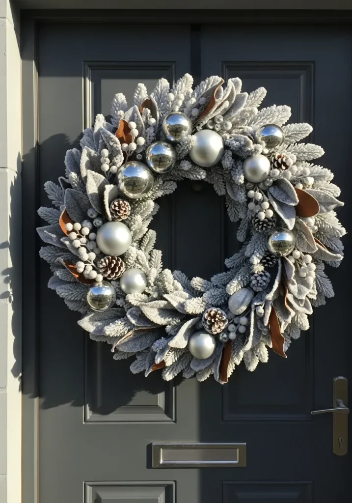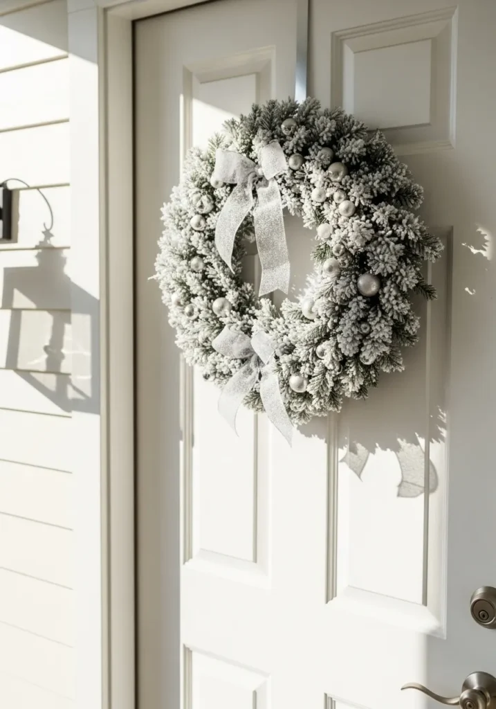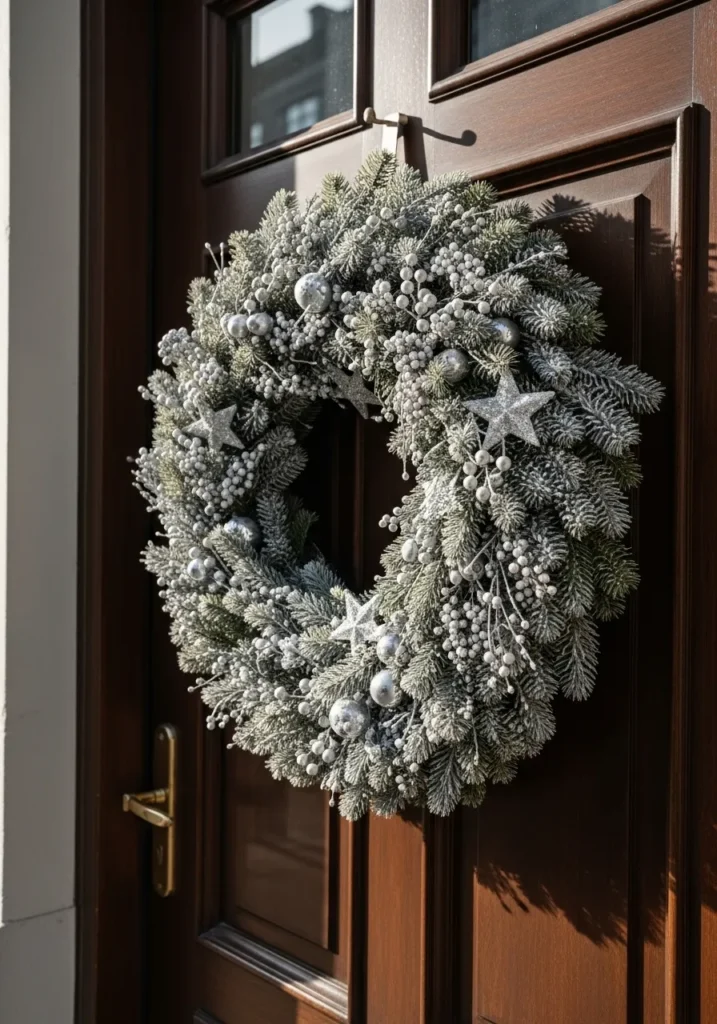 If you love the mix of natural greens with that powdery, snow-dusted finish, these wreath ideas will make your heart flutter. From simple frosted pines to luxurious silver accents, each one feels like a tiny piece of winter magic waiting to be hung on your door.
