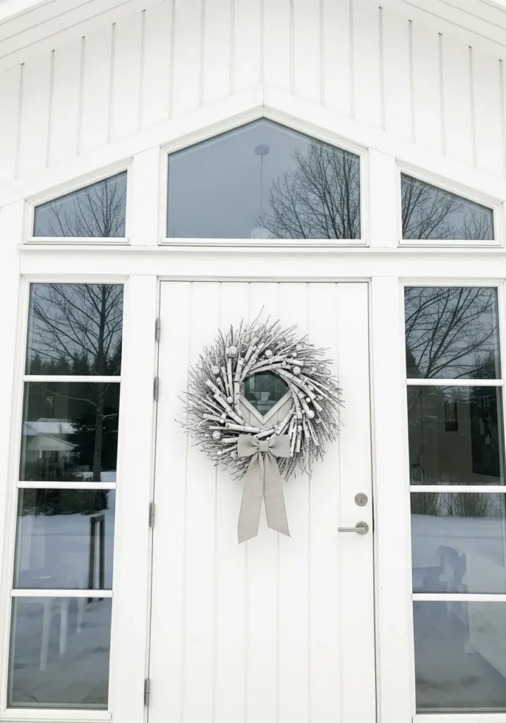There’s something so pure and peaceful about this wreath. I love how it makes a plain white door feel instantly dressed for winter—like a whisper of snowfall frozen in time.