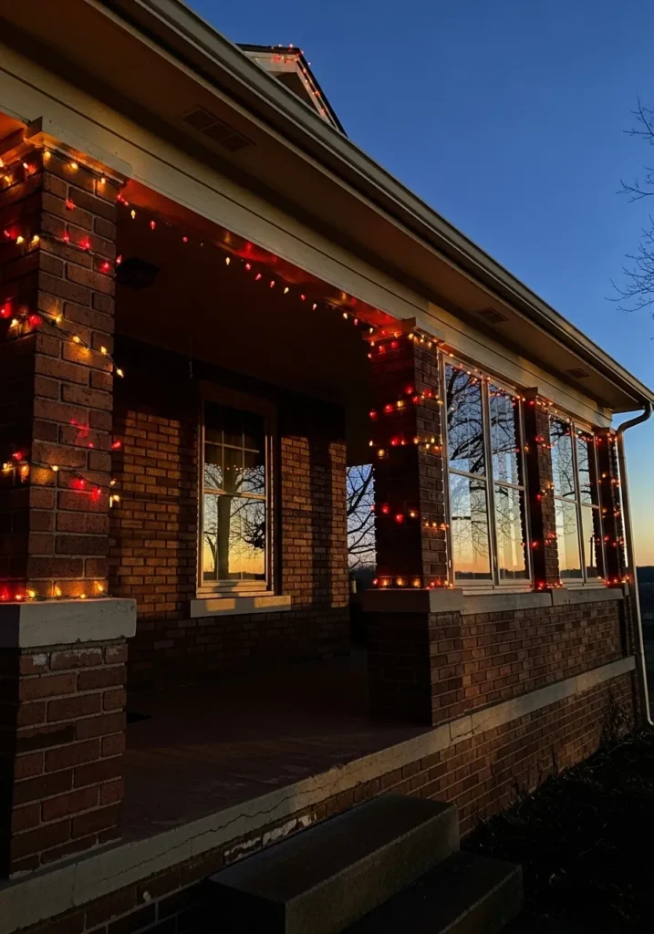 There’s something about front porch Christmas lights that makes a house feel instantly more welcoming. I love walking through neighborhoods at night and seeing all the little twinkles and glows that remind me of warmth, comfort, and family.